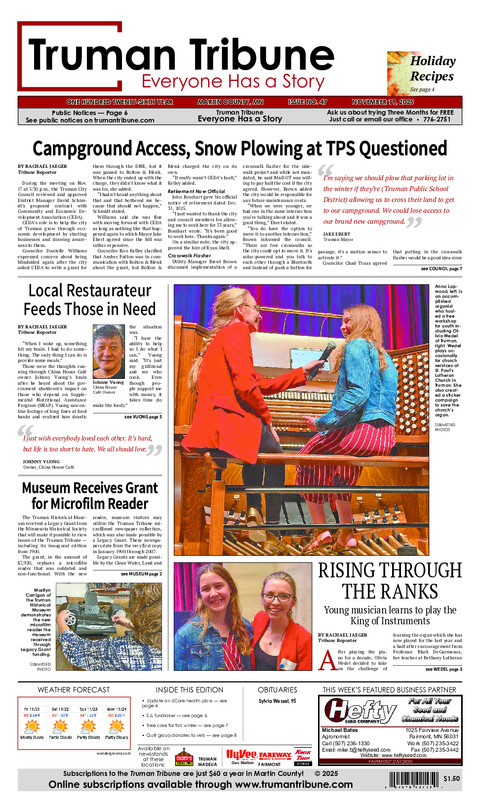 The Truman Historical Museum received a Legacy Grant from the Minnesota Historical Society that...